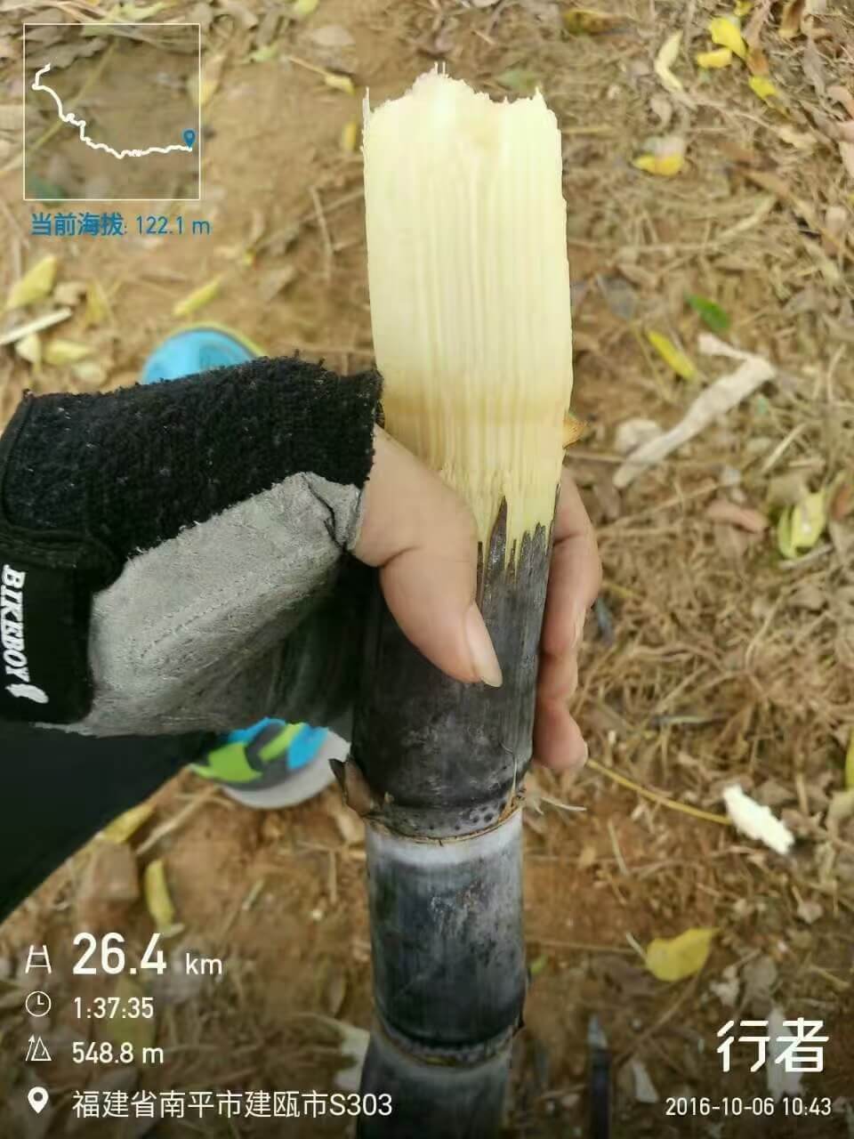 返程,骑行:建瓯—古田。早上 8:30 出发,晚上 9:00 左右到;路过一块甘蔗田,一老伯正在田里扒甘蔗的枯叶,我们就顺口问了句甘蔗熟了没,老乡随手就砍了根送我们吃,真的太感谢了。