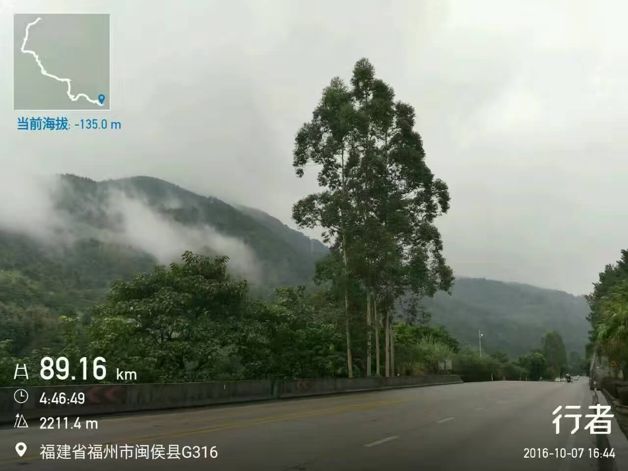 本想绕过南平400多米海拔的爬坡而走古田线,却翻了一座1300多米海拔的大山,从玉山镇出来就开始了16公里的连续上坡,其中还有5公里的碎石烂路,跌跌撞撞晚上九点多才到古田~